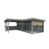 3 stora skjutdörrar släpper in ljus och värme. Skjutdörrarna i glas och aluminium är underhållsfria och kan öppnas åt båda hållen. Stugan är tillverkad av långsamväxande nordisk gran, ett slitstarkt och högkvalitativt material som är särskilt anpassat till de tuffa svenska väderförhållandena.
