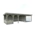 Tillverkad av nordisk gran med 120x120 mm starka limträstolpar och 19 mm takbrädor. Låsbara skjutdörrarna i 24 mm härdat dubbelglas (4 mm härdat glas - 16 mm luftspalt - 4 mm härdat glas) monterat i solida aluminiumprofiler. 28 mm väggstockar.