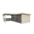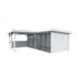 Byggsatsen levereras med alla nödvändiga delar och fästelement, vilket gör det enkelt att montera korrekt. Rymligt skydd under tak.