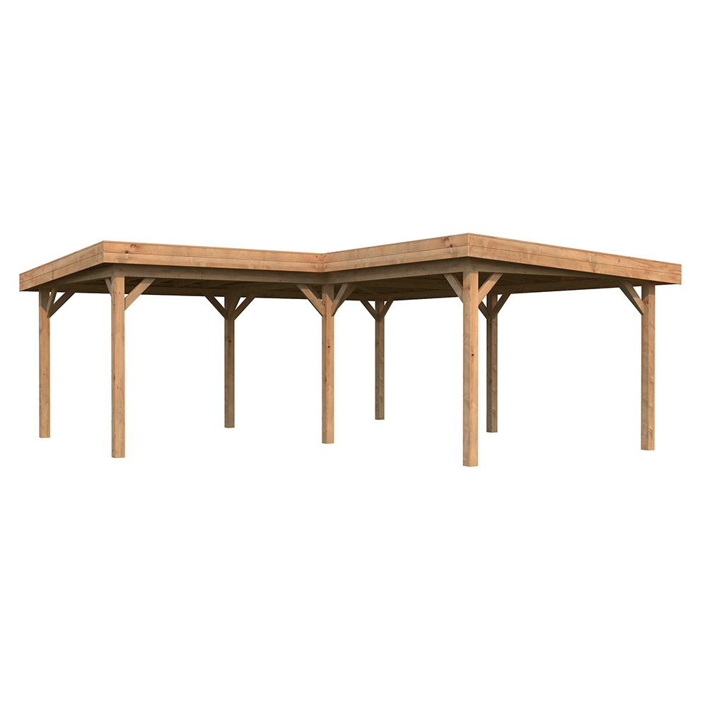 Stugan är tillverkad i långsamtväxande nordisk gran, med 120x120 mm starka limträstolpar och 19 mm takbrädor, ett hållbart material med hög kvalitet och särskilt anpassat för de svenska tuffa väderförhållandena.