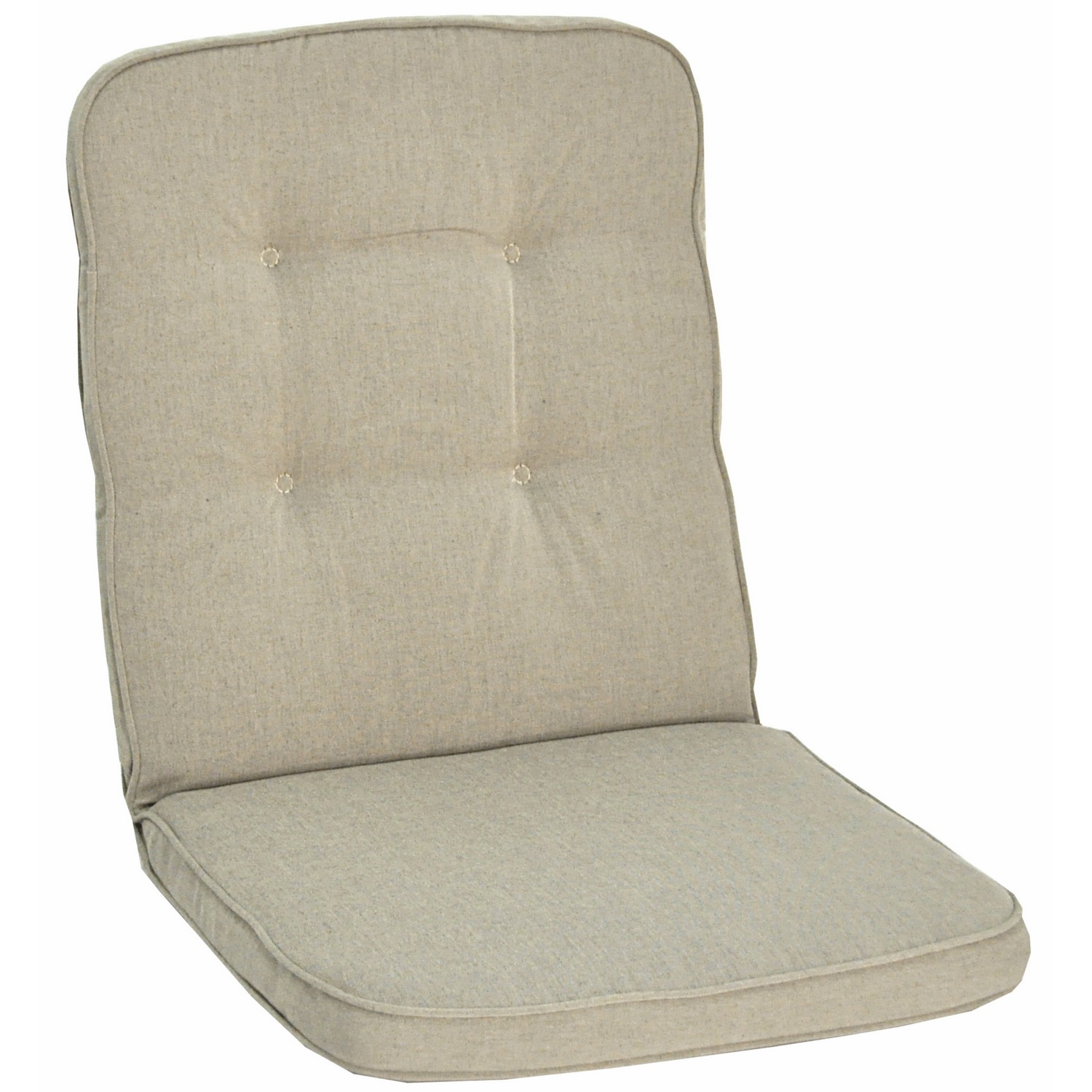 Fåtöljdyna Minivik Woodline från Fritab. En boxsydd dyna som passar många utemöbler. Dyna med fibervadd svept runt en tjock polyeterkärna för mjuk komfort.