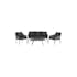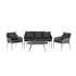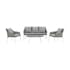 Loungegrupp Spoga från Venture Home bestående av en tvåsitssoffa och två karmfåtöljer. Inkluderat i gruppen är också mjuka dynor samt ett ovalt lågt soffbord med en bordsskiva i klarglas som skapar en exklusiv helhet.