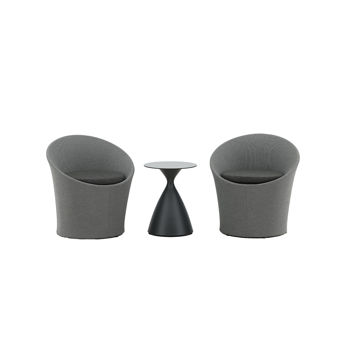 Detta nätta loungeset kommer med två bekväma stolar med tillhörande dynor och ett lätt bord som du enkelt förflyttar. Den tidlösa designen gör att det är kompatibelt i många miljöer och passar lika bra på den stora terassen som den lilla uteplatsen. Ett mysigt loungeset där du kan njuta av en kopp kaffe en varm morgon i solen!