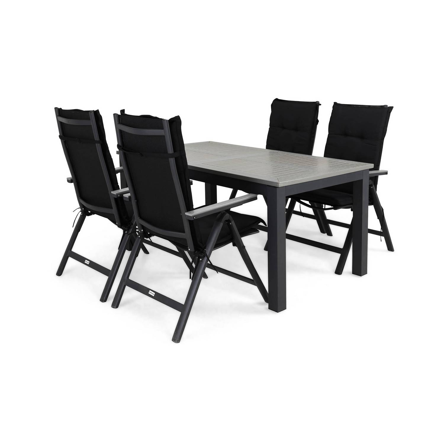 När du ska bjuda in släkt och vänner på härliga grillkvällar behöver du ha bra utemöbler. Monaco matgrupp är tillverkad av stabila och tåliga material som dessutom inte kräver något särskilt underhåll. Perfekt för dig som inte vill lägga ner tid på skötsel av utemöbler. Bordet är förlängningsbart och med ett enkelt handgrepp kan du snabbt få plats för fler vid matbordet. I matgruppen ingår 4 st positionsstolar som inte bara är eleganta utan också mycket bekväma. Med ett handtryck justerar du ryggens lutning efter eget önskemål. Perfekt när du vill koppla av och njuta av eftermiddagssolen!
