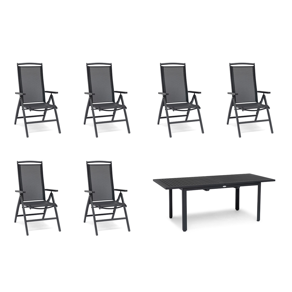 Matgrupp Utomhus HillerstorpNydala 6st Positionsfåtöljer med Förlängningsbart Trädgårdsbord 96x200-280 cm