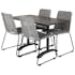 Matgrupp från Venture Home. Samla ihop dina vänner och njut tillsammans av en solig dag i trädgården runt denna matgrupp. Matbordet Denver har bordsben i aluminium och en bordsskiva i svart aintwood. Matchas med 4 st Lindos stapelbara matstolar i svart stål. Enklare montering krävs.