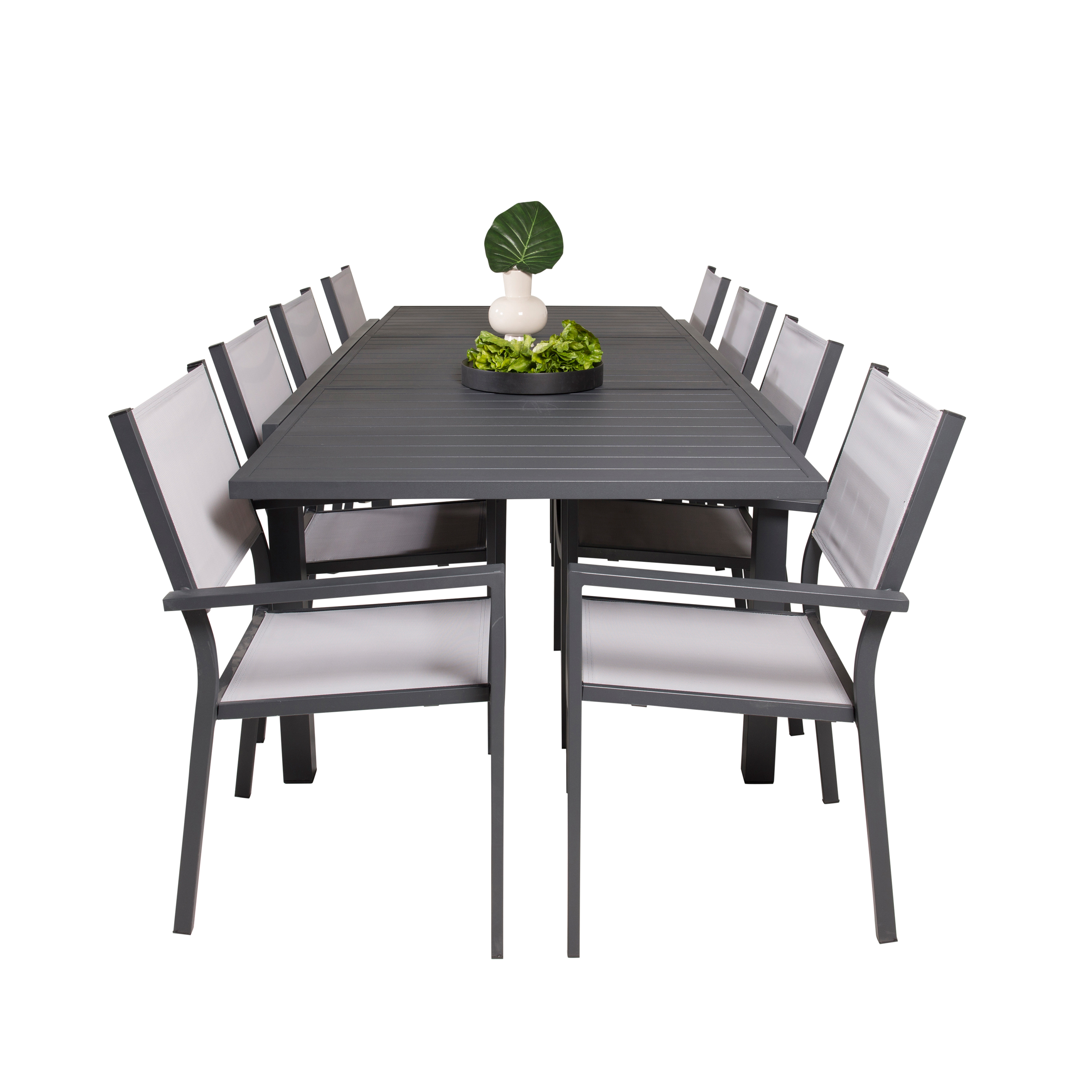 Matgrupp Venture Home Madrid med åtta stycken Copacabana stolar. Bordet har en iläggsskiva som gör att du kan förlänga bordet från 1600 till 2400 mm.
