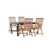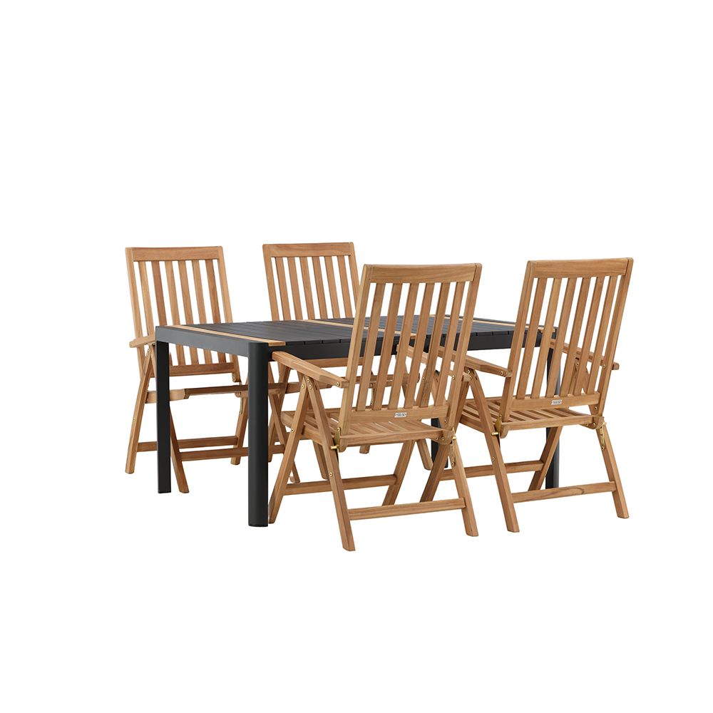 Matbord Togo har ett smakfullt utförande med en rektangulär bordsskiva och träfärgad teak och ett underrede i aluminium, matchar utmärkt med matstolarna från serien Kenya. Stolarna är fällbara och har armstöd för extra komfort.