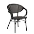 Caféstol Hillerstorp Äppelhed är en stilfull, stapelbar caféstol med ram i färgad aluminium och flätad sits och rygg i textilene.