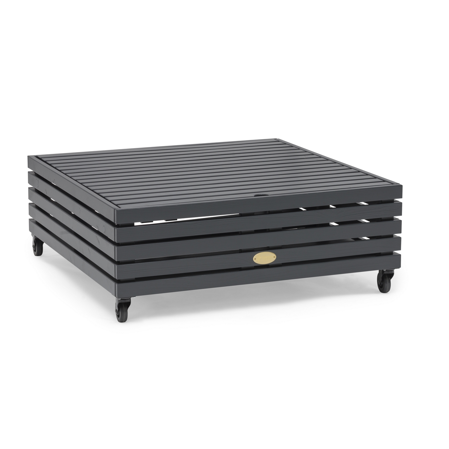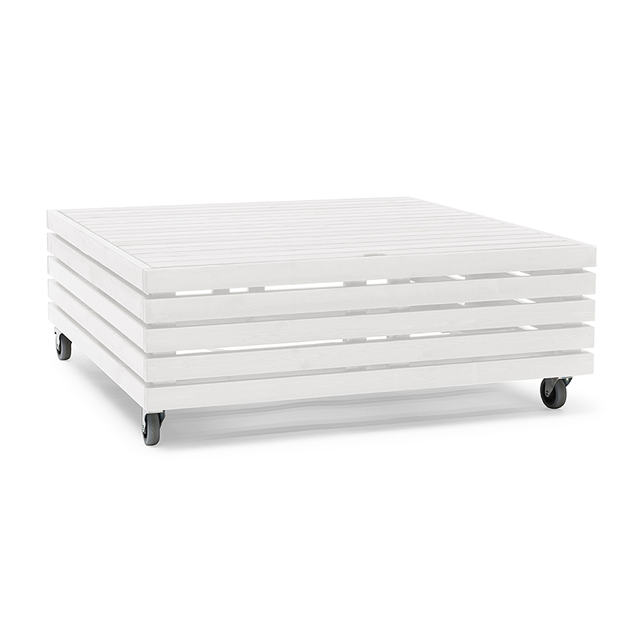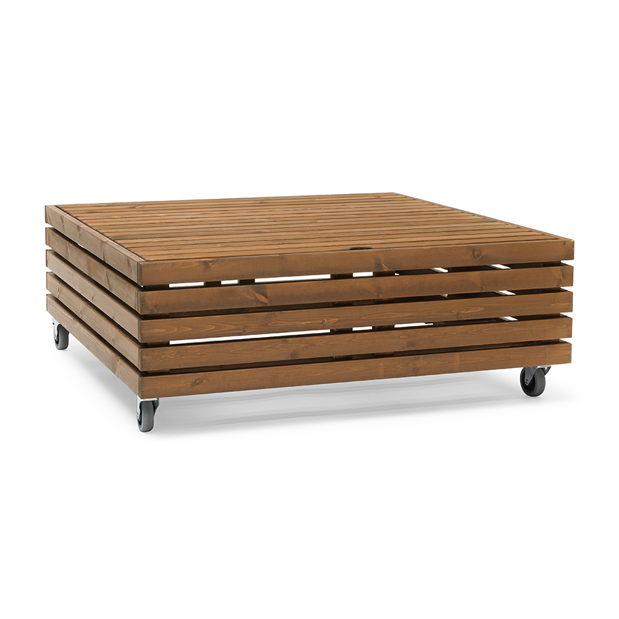 Divanen, som är i stilrena linjer och generösa dimensioner, kan kombineras på oändligt många vis. Tack vare att möbeln har hjul, som är låsbara, kan den enkelt flyttas runt efter sol och skugga. Avtagbart lock ger möjlighet till smart förvaring.