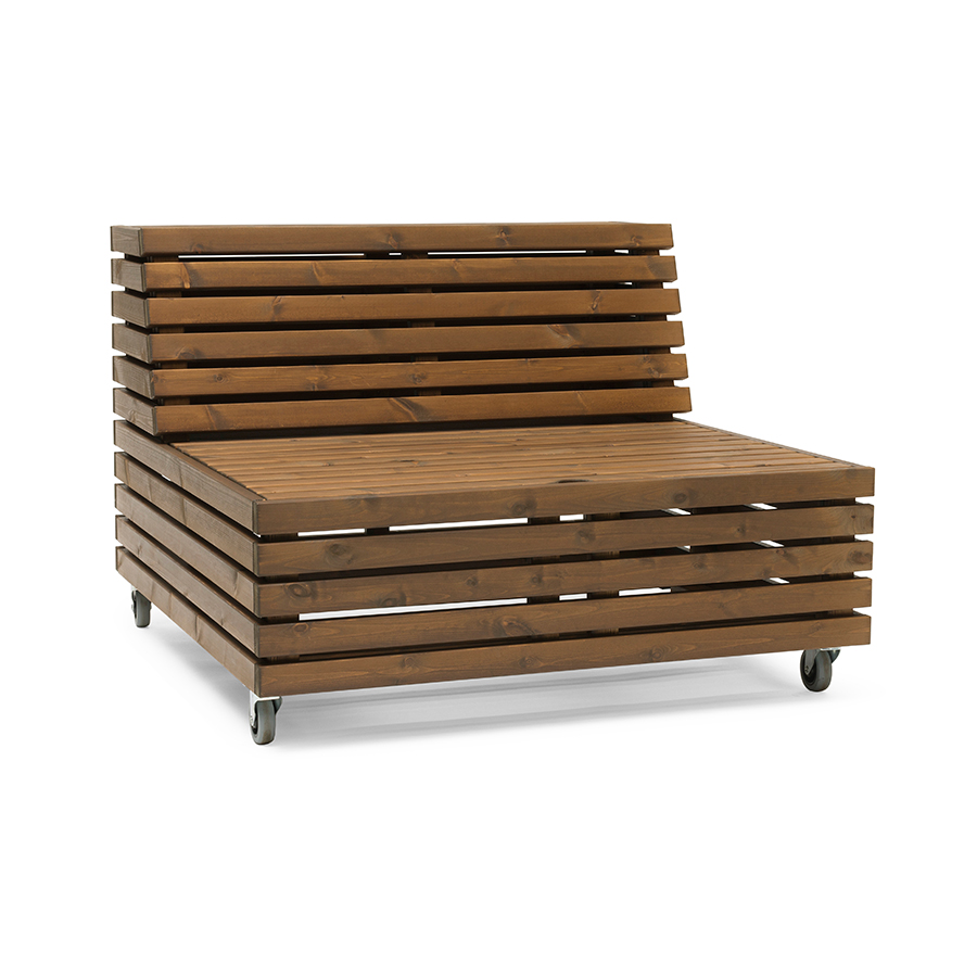 Det unika med Bara Vara är att fåtöljen, i stilrena linjer och generösa dimensioner, kan kombineras på oändligt många vis. Tack vare att möbeln har hjul, som är låsbara, kan den enkelt flyttas runt efter sol och skugga. Avtagbart lock ger möjlighet till smart förvaring. Ur perspektivet kvalité och miljömedvetenhet är Bara Vara-serien något att stoltsera med. Trämöbeln är svensktillverkad och produceras med FSC-certifierad tålig kärnfuru från Norrland. Den är laserad i en vattenbaserad färg och har även en vaxad, vattenavvisande yta.