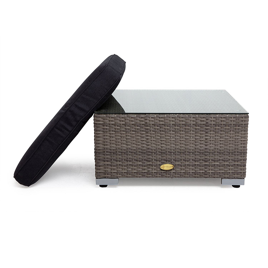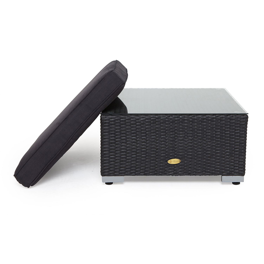 Wisconsin fotpall/divan levereras med dyna och glasskiva - kan användas som både fotpall, sidobord eller som extra sittplats när gästerna är många.