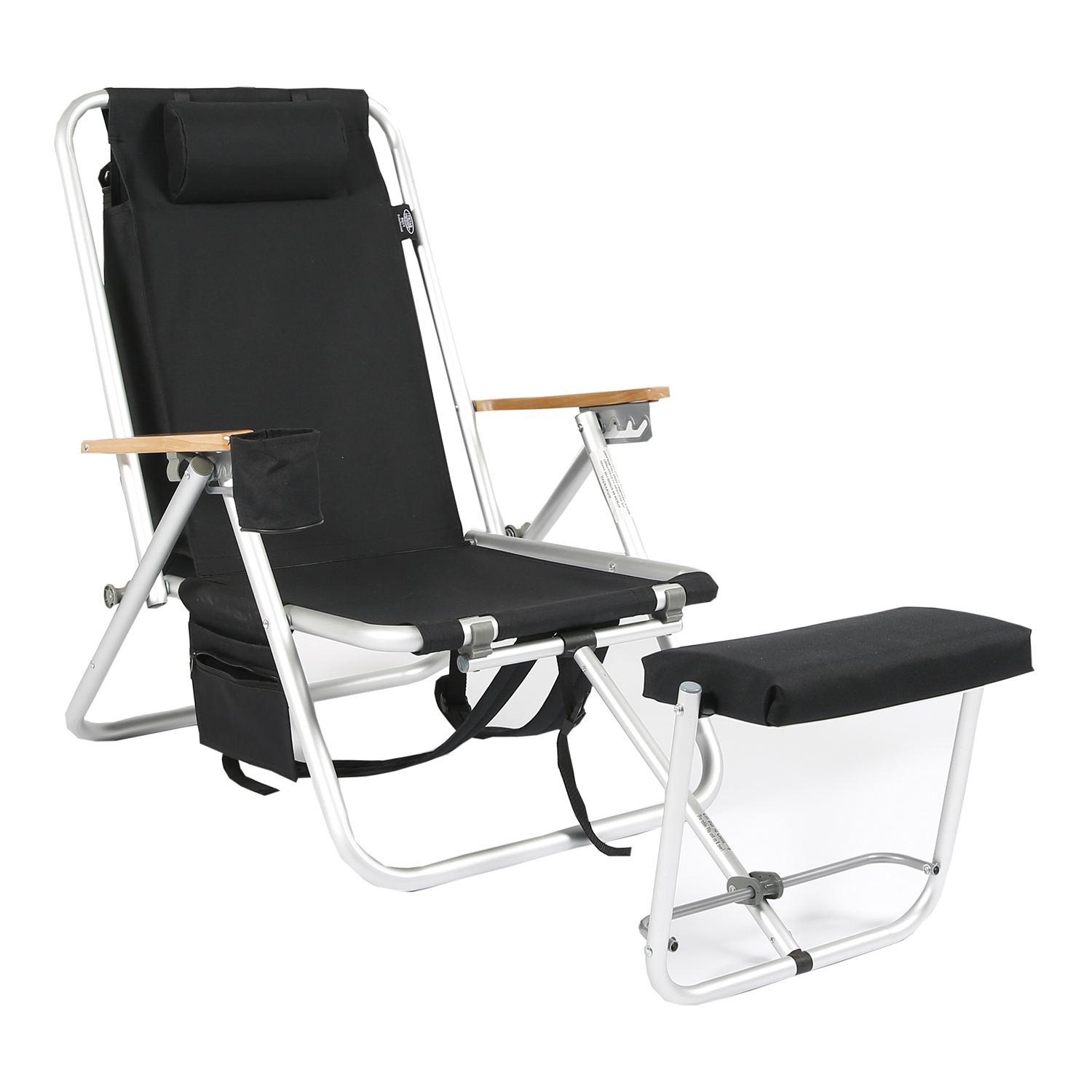 Friluftsstol Roxy från Fritab. En bekväm och praktisk stol som är ställbar i fyra lägen. Stolen är utrustad med nackkudde, fotstöd, mugghållare, kylbag och mobilficka. Stolen har en stabil stomme i aluminium. Roxy fungerar som en ryggsäck när den är hopfälld.