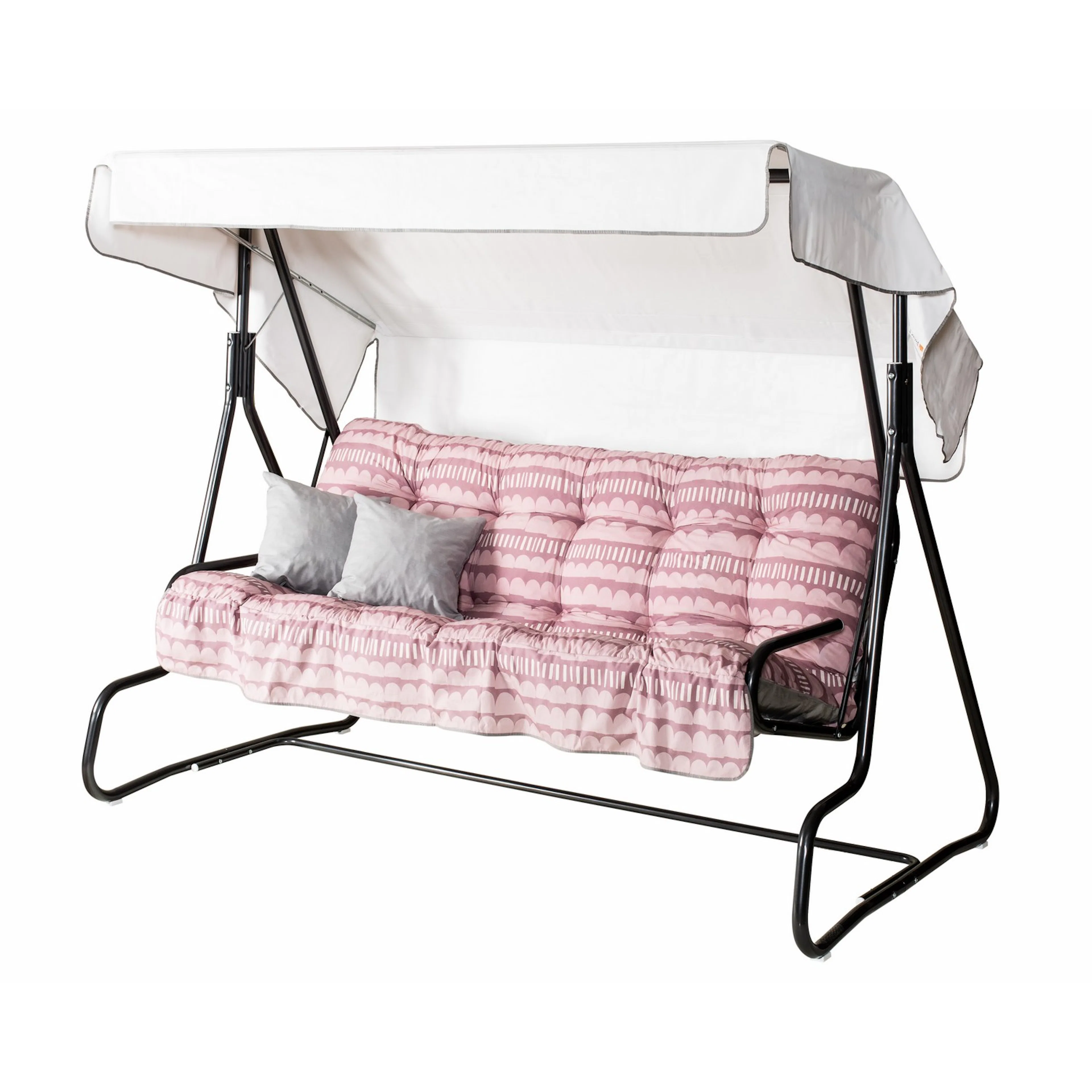 | Material | Pulvermålad stålrörsstomme, förzinkat metallgaller, textilen en blandning av bomull/ polyester, taket pvc- plast., Stål |