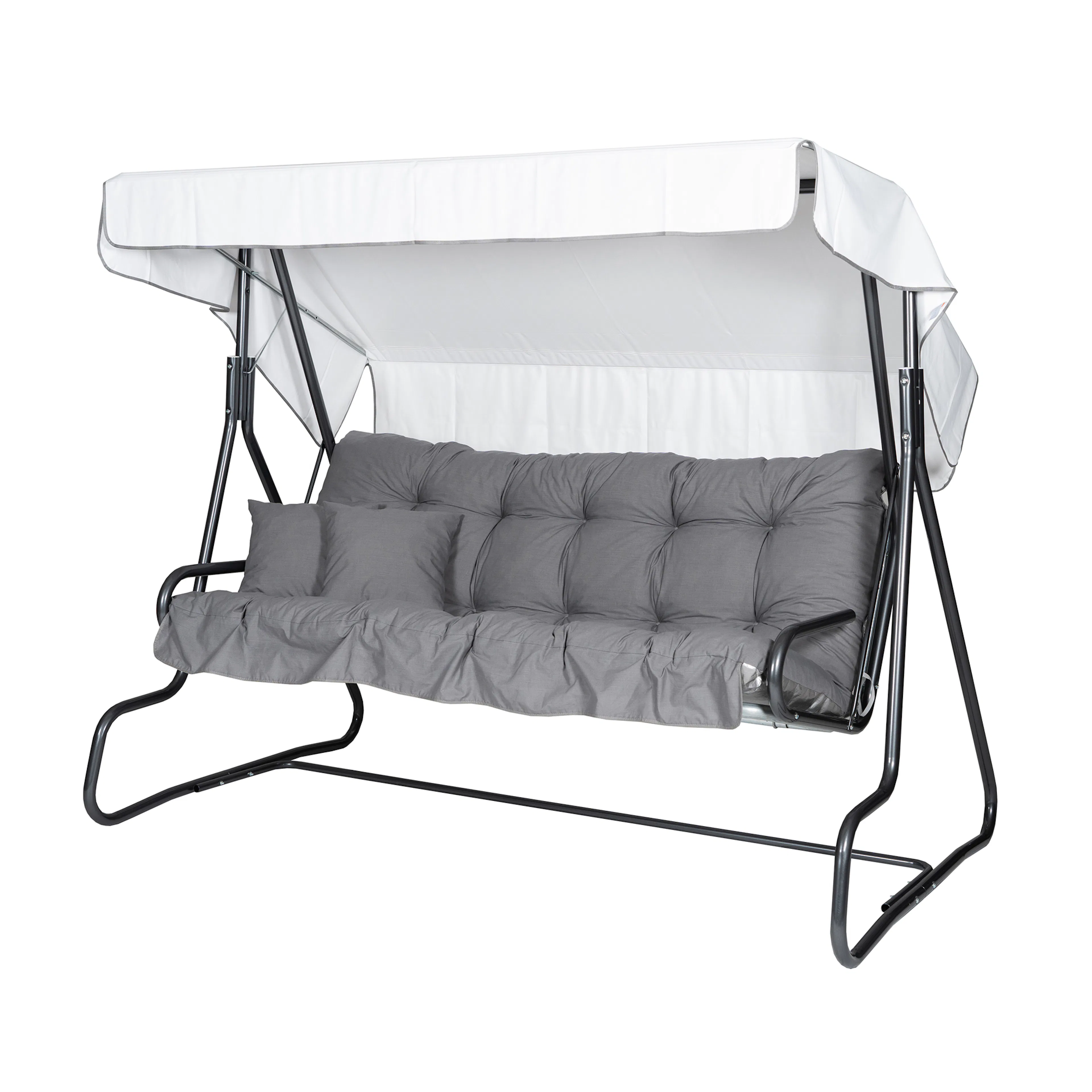 Hammock De Grande 3-sits ifrån Varax med dynor, grå stomme och vitt tak.