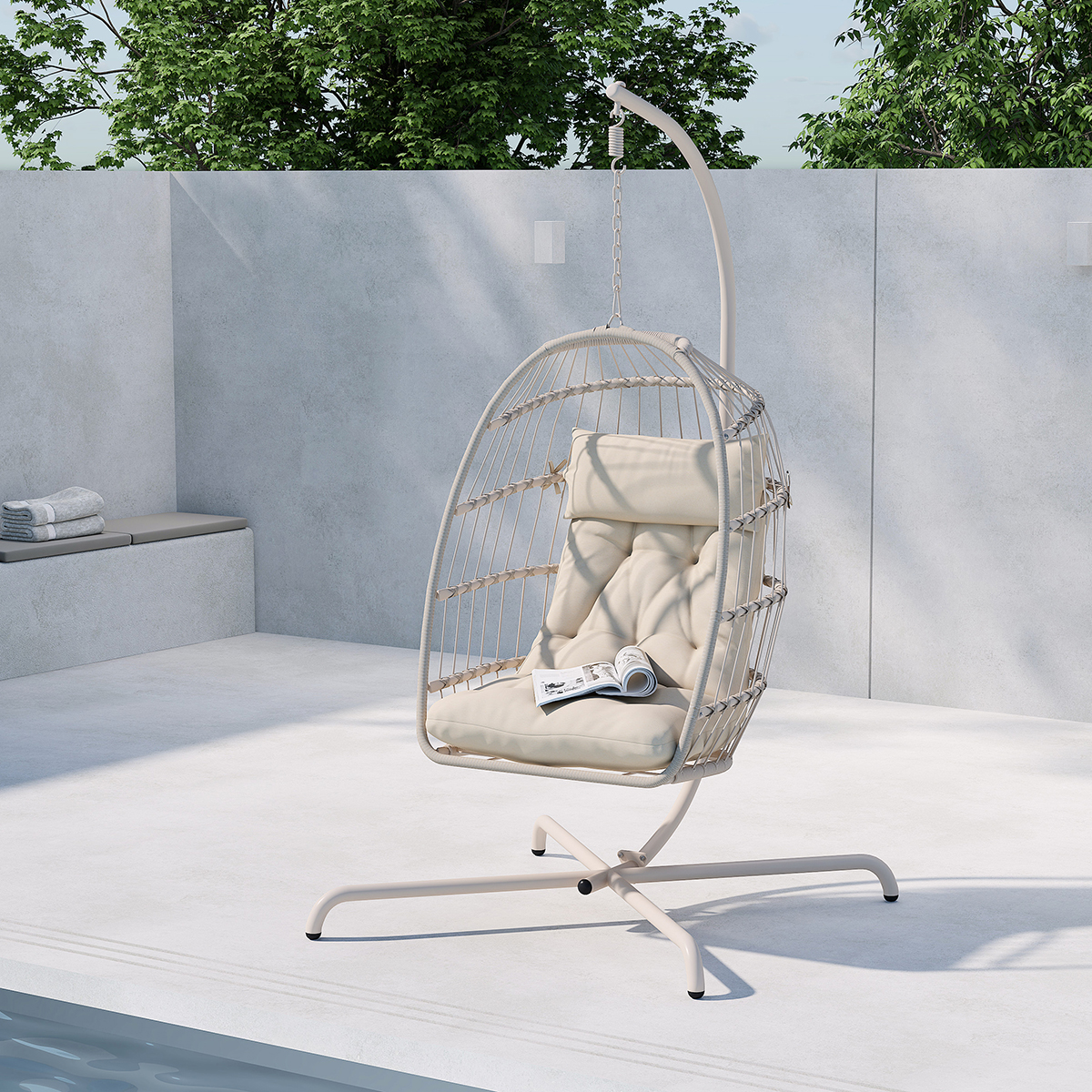Terezza är en elegant hängstol designad för utomhusbruk, perfekt för att skapa en avkopplande oas i din trädgård eller på uteplatsen. Med sin rundade form och robusta konstruktion av stål och slitstarkt rep, kombinerar Terezza både hållbarhet och en stilfull design. Den jordnära beige färgen ger en harmonisk och modern känsla som passar in i alla utomhusmiljöer.