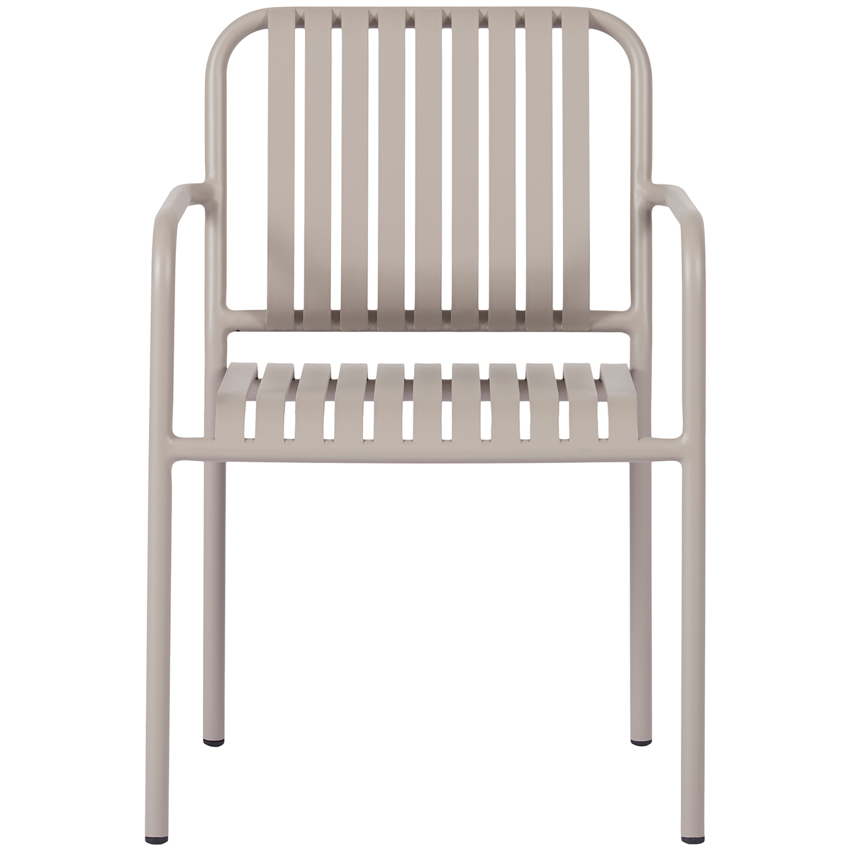 Trädgårdsstol med breda metallribbor i snygg design. Stolen har ett långt sittdjup som du kan sitta i bekvämt även utan dynor. Stolarna är tillverkade av slitstarkt aluminium, vilket är ett starkt men också lätt material. Metallen är belagd för att göra den underhållsfri. Stolen är stapelbar för enkel förvaring.Mått: B57 x D63 x H83 cm.