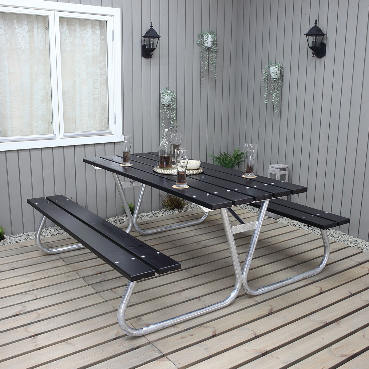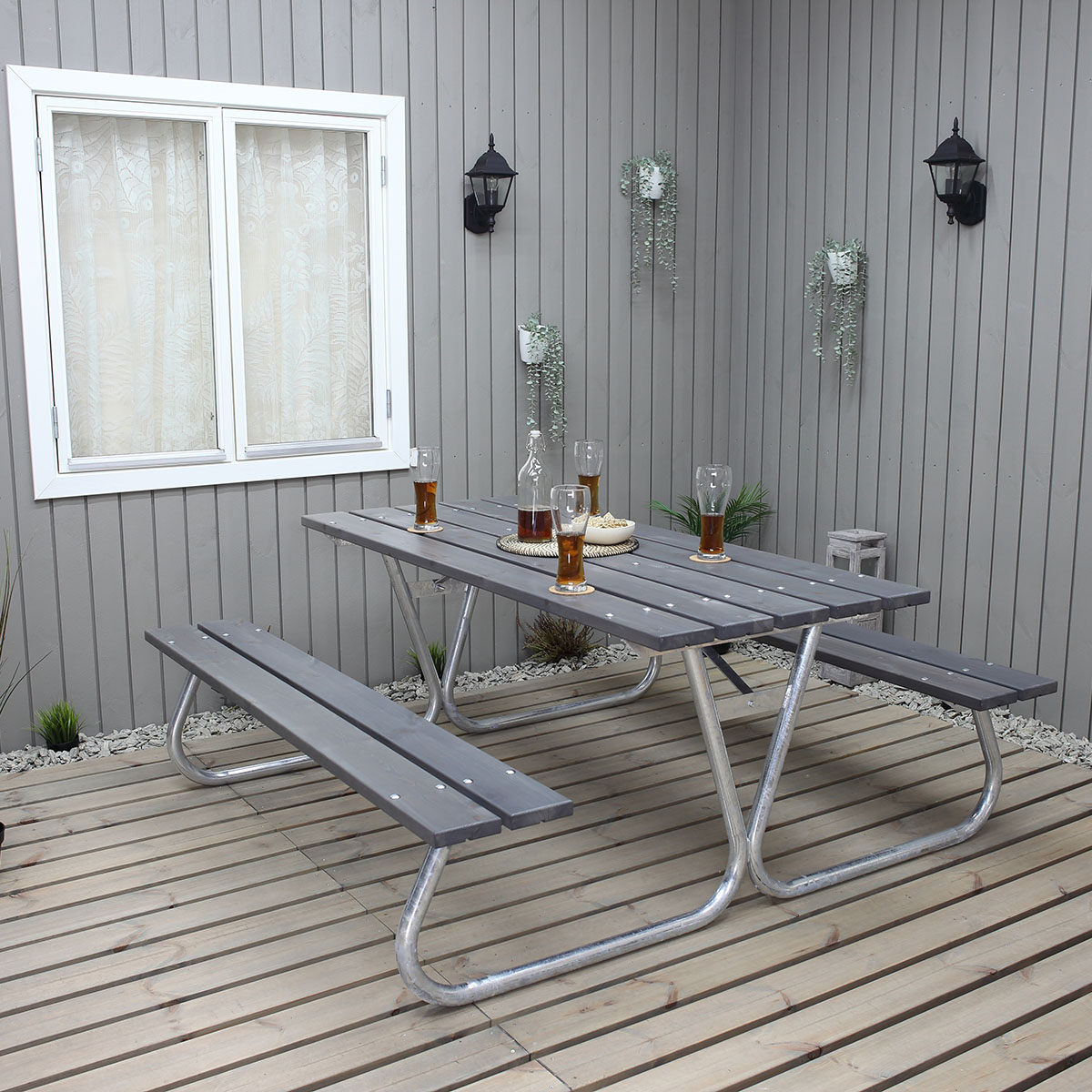 Rejäl konstruktion, kraftiga rör och brädor. Ett bänkbord som kräver minimalt med underhåll. Picknickbord Stabil passar i de tuffaste miljöer, samtidigt som den är lätt att underhålla. Bord med fasta bänkar i ett och plats för 6 personer. Ett bra val för rastplatser, parker och uteplatser med mycket aktivitet. Levereras omonterad. Utan ryggstöden.
