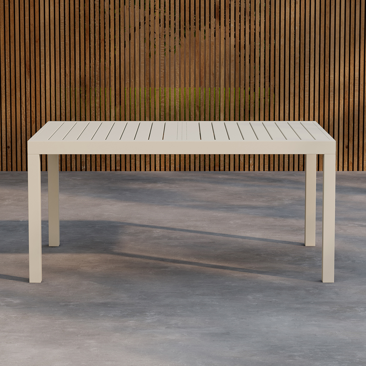 Upptäck Capo – ett elegant och mångsidigt matbord som tar din utomhusmiljö till nästa nivå. Med sin beige färg och stilrena design blir det en självklar mittpunkt för sociala tillfällen och måltider utomhus. Den rektangulära formen och den förlängningsbara funktionen gör att bordet enkelt anpassas efter behov, vilket ger gott om plats för både små och stora sällskap.
