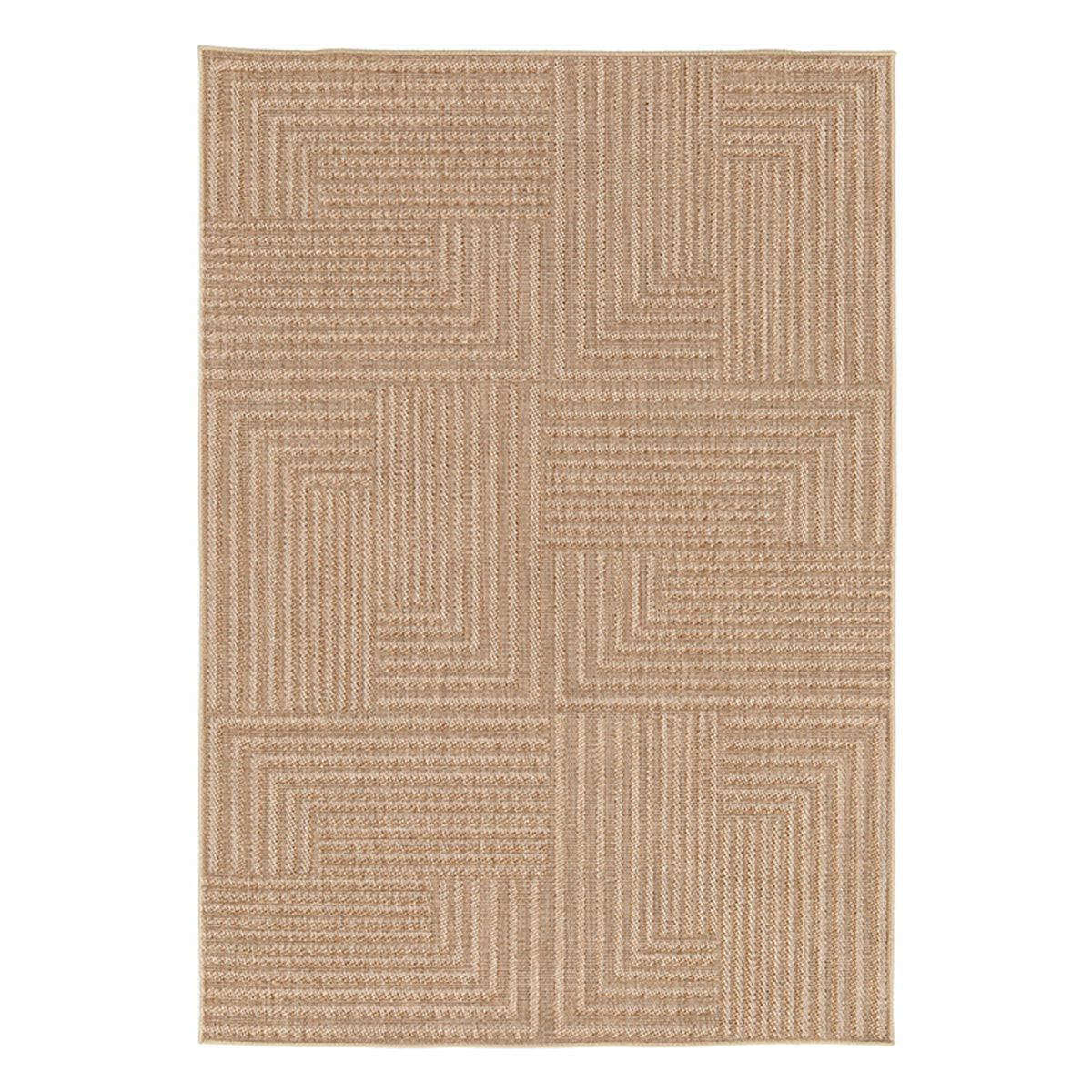 Mattan har tydliga strukturer och mönstret är klassiskt modernt i en sparsmakad geometrisk design. Känslan av struktur förhöjs ytterligare genom samspelet mellan garner av olika nyanser ton-i-ton. Tillverkad av 100% extra hållbart polypropylengarn. Garnet är UV-beständigt, tål vatten, fäller inte, och är fläckavvisande. Mattan kan därför utan problem placeras utomhus, i uterum eller inomhus. Kanterna är avslutade med tålig langett i matchande färg. Mattan är lätt att göra ren - dammsug eller spola av med ljummet vatten och låt torka. Fläckar avlägsnas med en svamp, lite ljummet vatten och diskmedel.