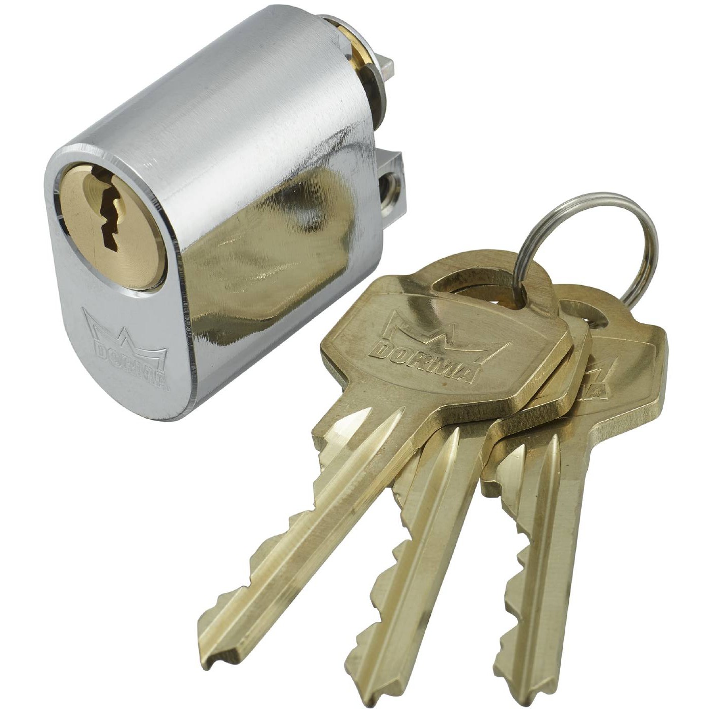 Oval låscylinder i mässing. Levereras med 3st nycklar. För skruvfastsättning genom låsstolpen.