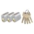 Oval låscylinder i mässing i satser om 3st cylindrar med lika låsning. Levereras med 5st nycklar. 7-stift. För genomgående fastsättning. Uppfyller kraven för klass 3.