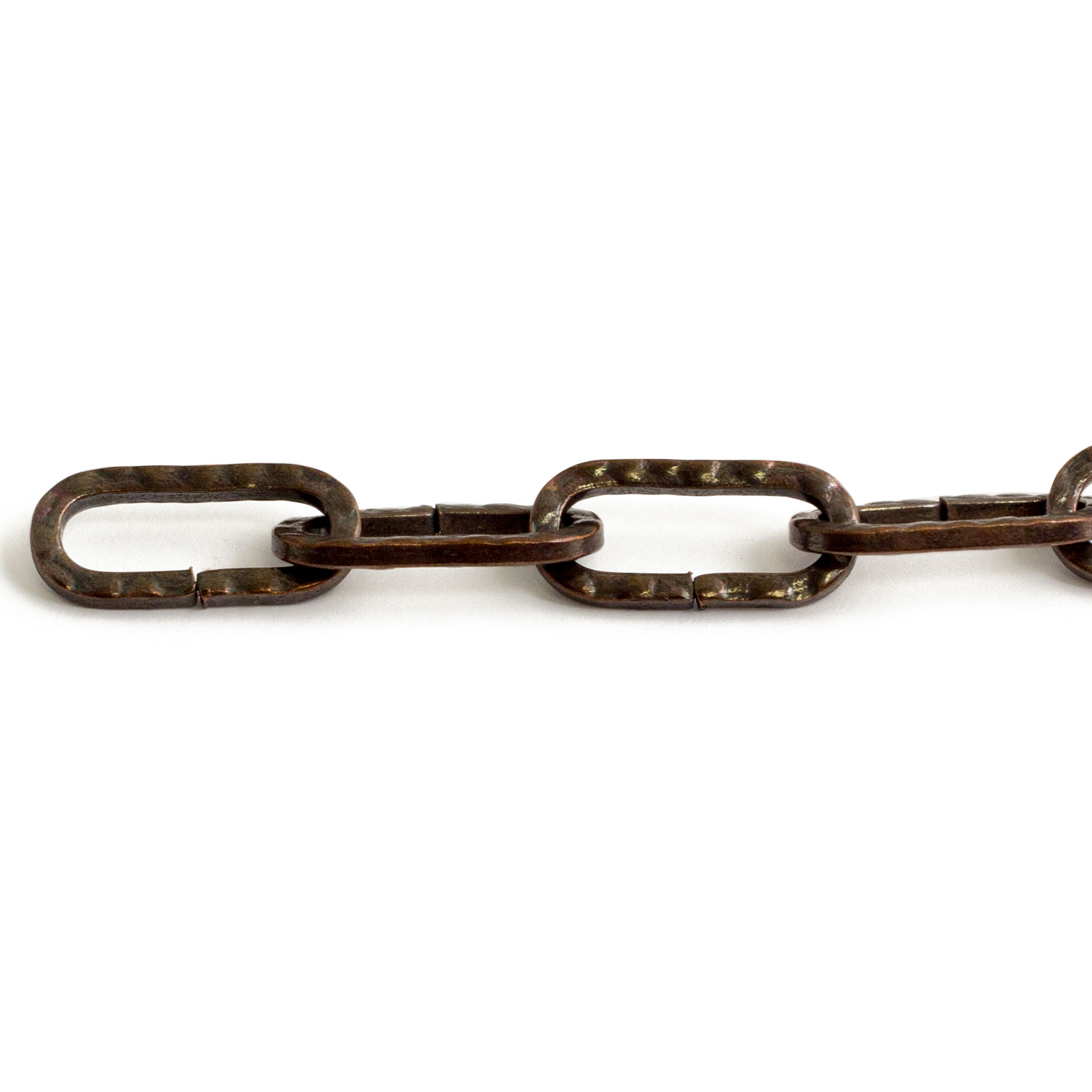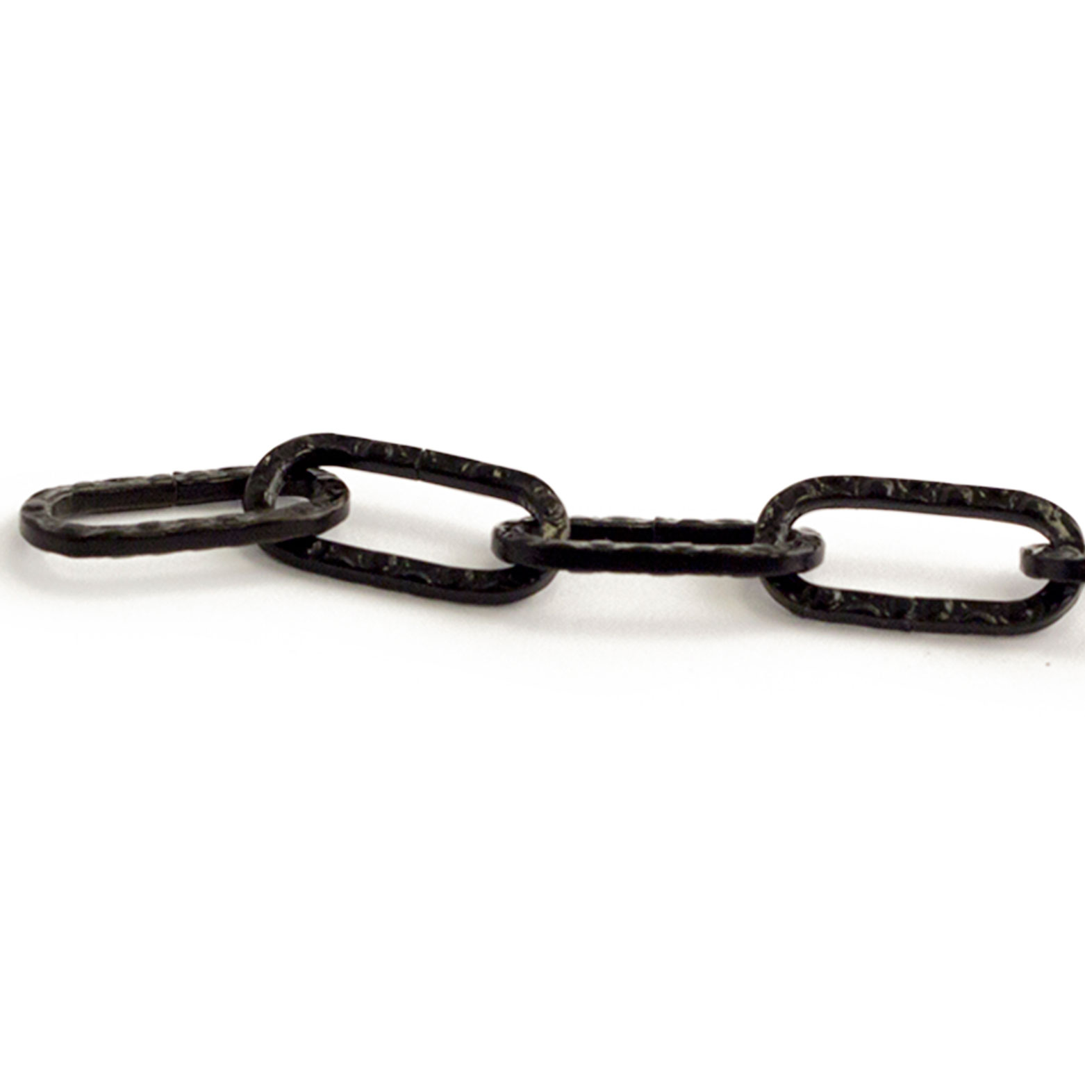 Ovallänkad, hamrad dekorkätting av stål. Maxbelastning 12 kg. Detta är den belastning vi säkert vet att produkten tål. Brottgränsen, när materialet brister, är för vår kätting 5 gånger angiven maxbelastning. (Värdena är beräknade och garanteras inte)