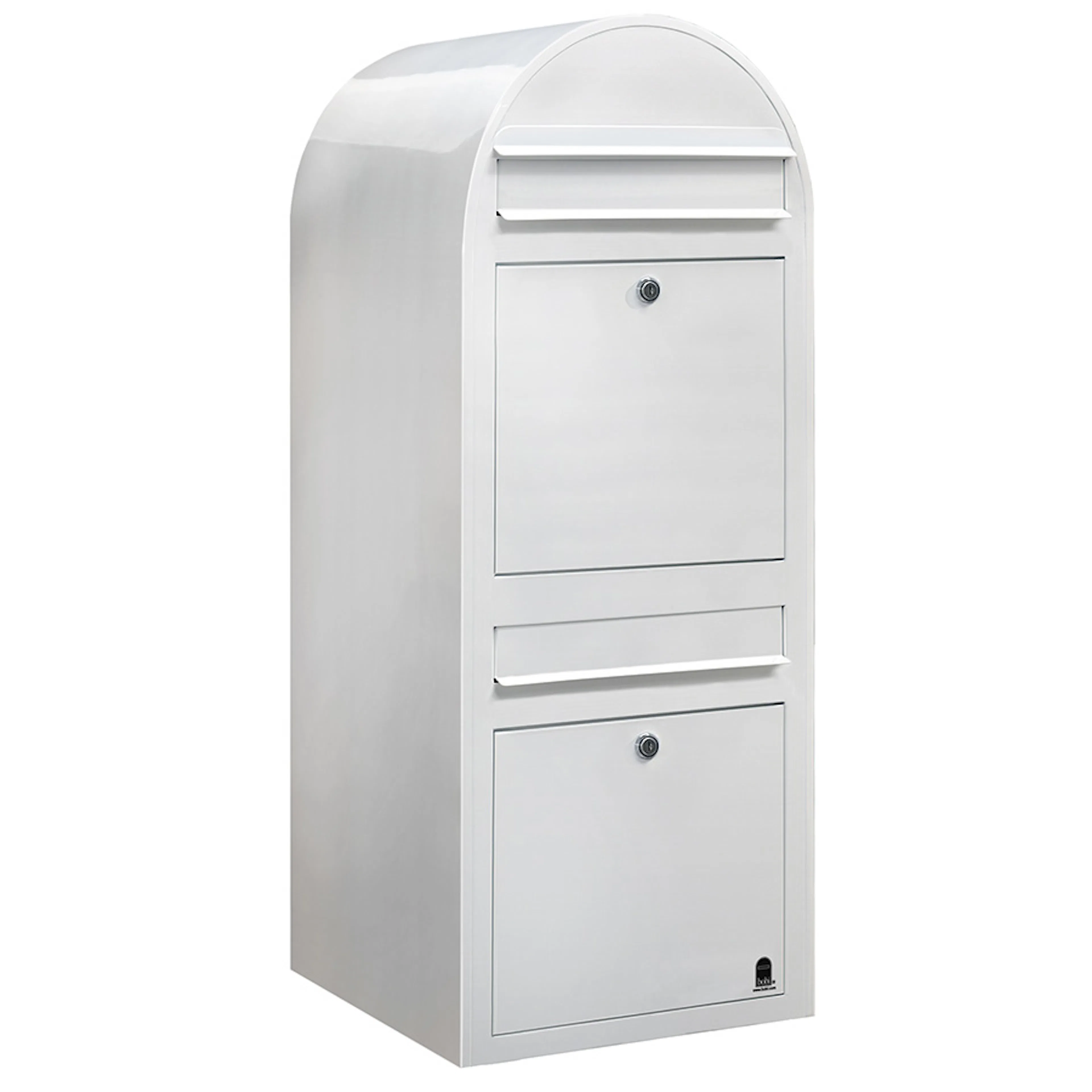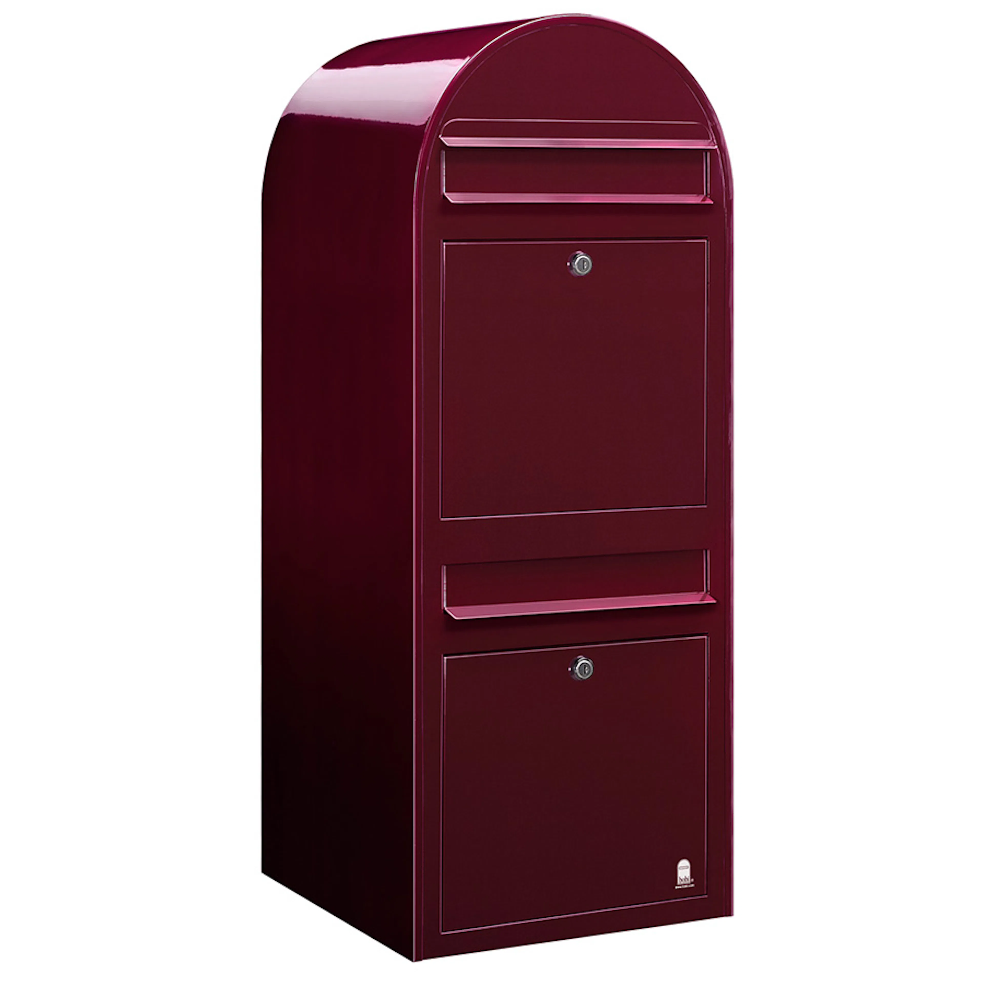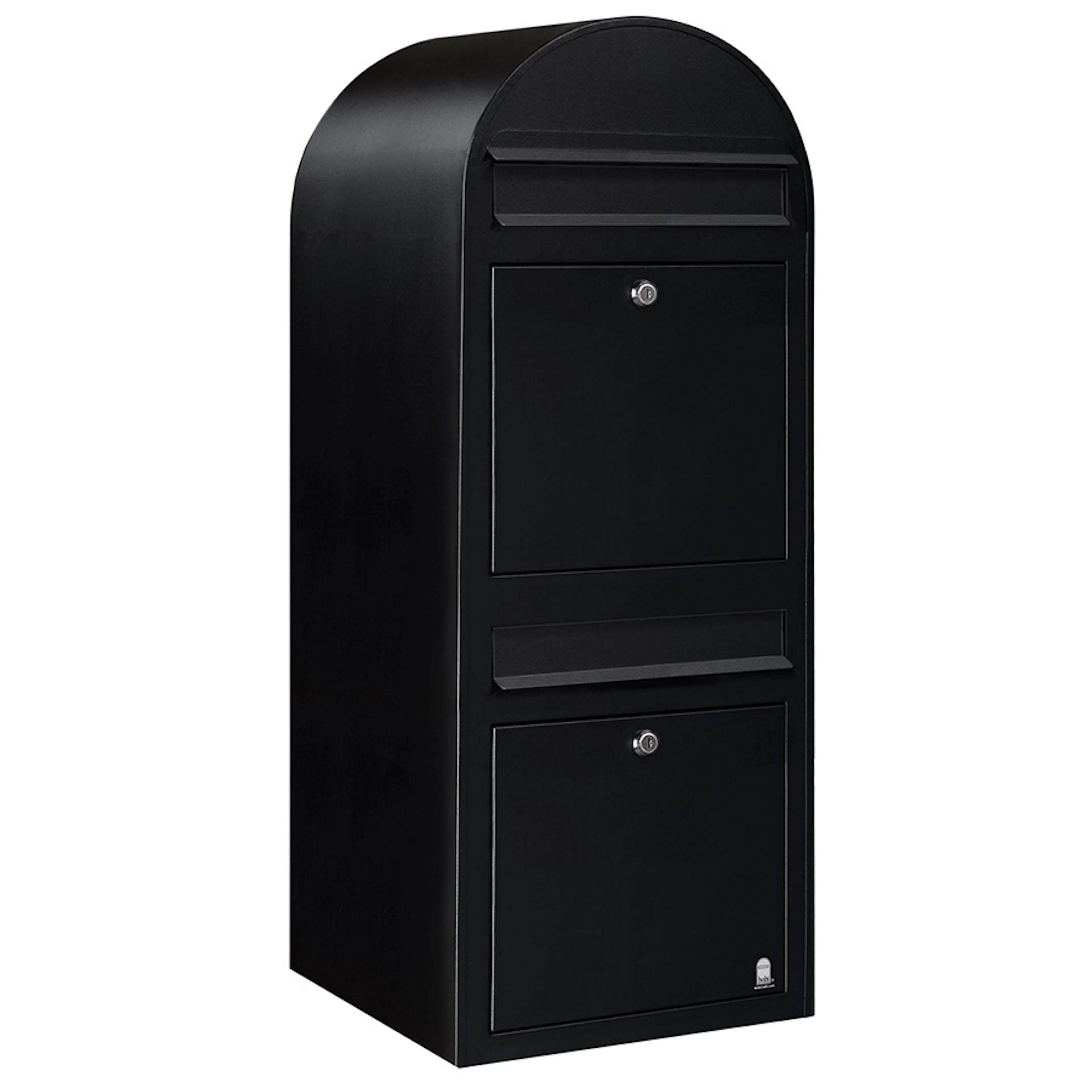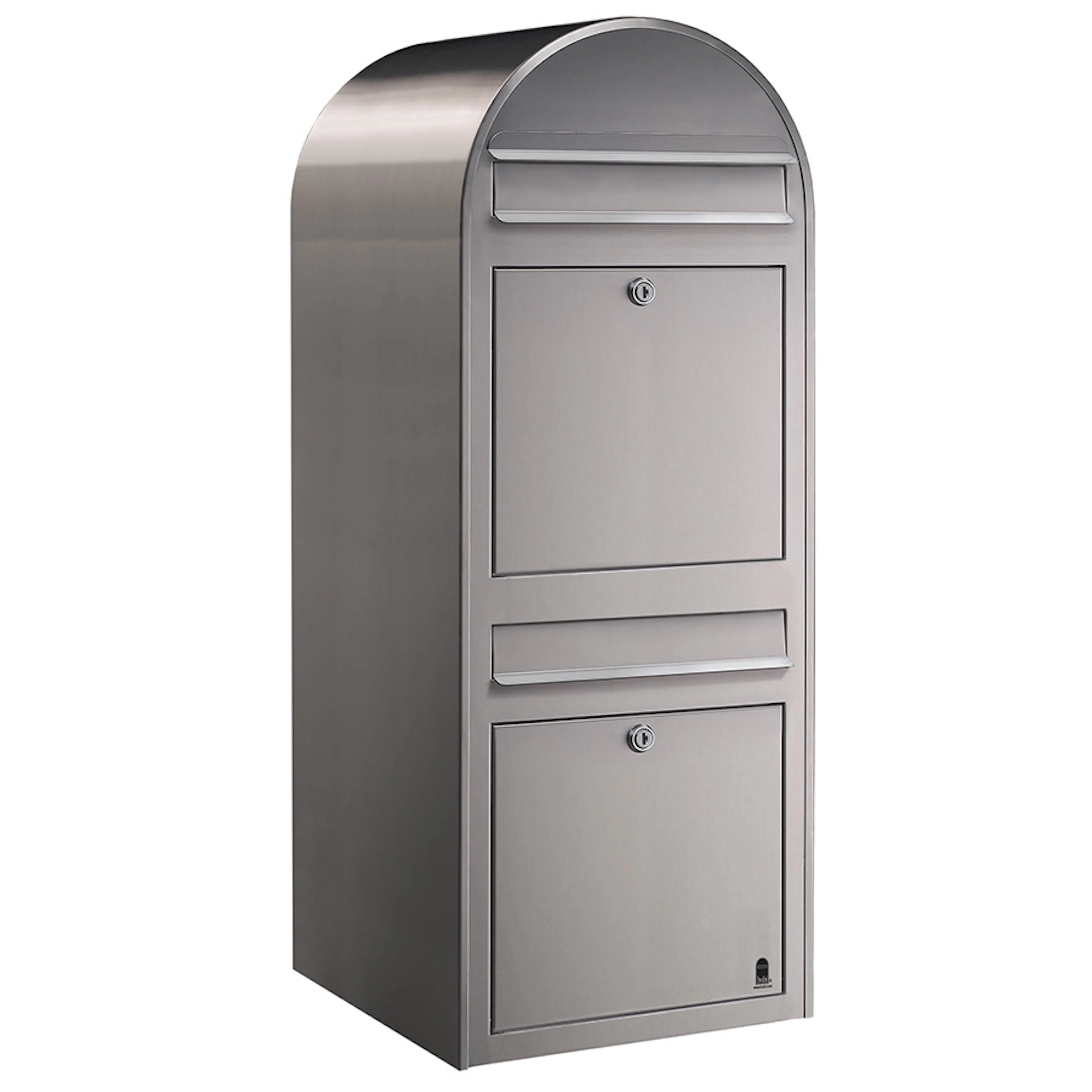 Denna brevlåda från Bobi är försedd med två separata fack vilket passar utmärkt till exempelvis ett flerfamiljshus. Brevlådan finns tillgänglig i galvaniserat stål, täckt med ett vädertåligt lager av polyester, eller rostfritt stål i borstad yta.